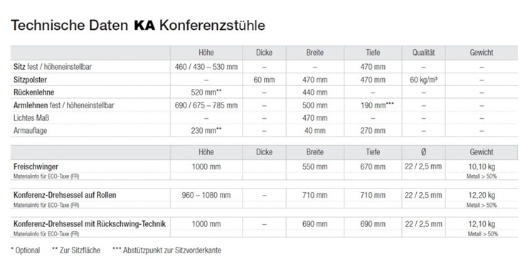 KA Konferenzstuhl mit atmungsaktiver Netzmembran oder dünner Aufpolsterung .
